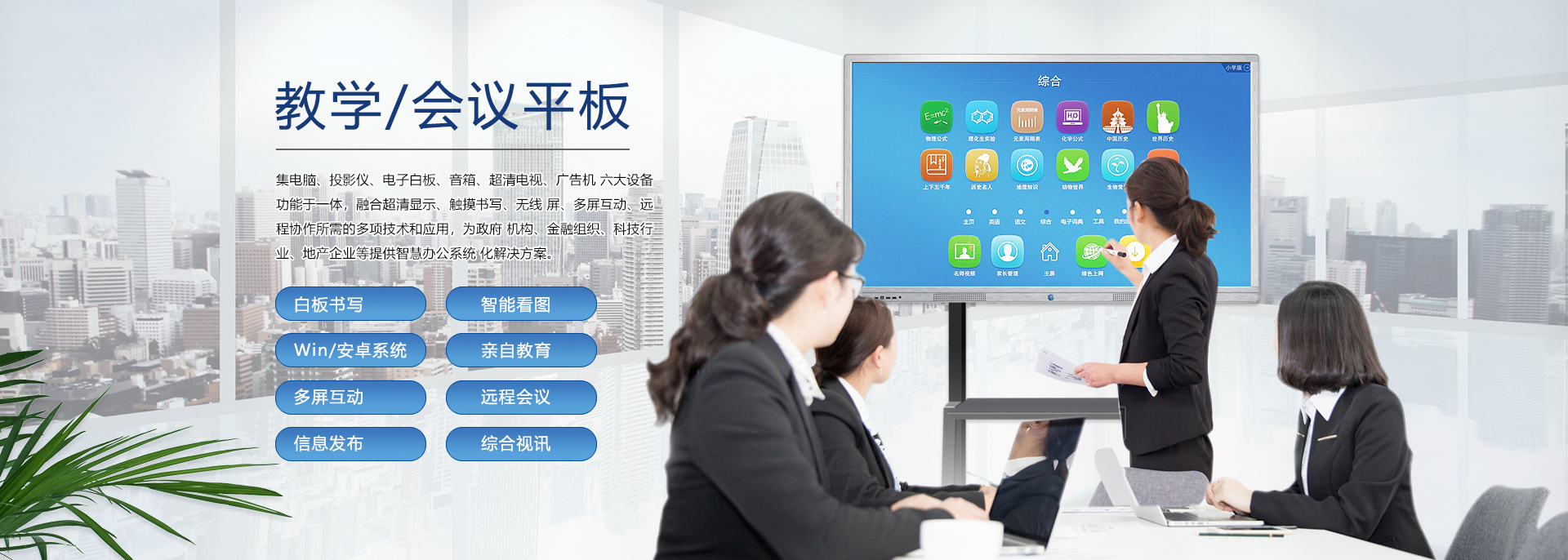 在信息急劇膨脹、互聯(lián)網(wǎng)快速發(fā)展、競(jìng)爭(zhēng)愈加激烈的商業(yè)社會(huì),“開會(huì)”已經(jīng)成了職場(chǎng)人士最為熟悉的一種工作方式。尤其是企業(yè),工作中需要通過(guò)許多大大小小的會(huì)議交流信息、解決問(wèn)題和作出決策。會(huì)議的最終目的是提高企業(yè)運(yùn)作的效率,但是許多的企業(yè)卻往往陷入了“低效率”的泥潭。場(chǎng)景一:在與客戶的洽談會(huì)上!準(zhǔn)備好的PPT竟發(fā)現(xiàn)打不開了!場(chǎng)景二:開會(huì)啦!與會(huì)人員陸續(xù)進(jìn)入會(huì)議室,人手一疊厚厚的資料,一時(shí)間,整潔干凈的會(huì)議室一下子沸騰起來(lái),會(huì)議討論聲,不停翻找資料的刷刷聲好不“熱鬧”!場(chǎng)景三:炎炎夏日,在小“黑”層里,投影機(jī)發(fā)出陣陣熱浪,讓周圍本就燥熱的人更加的心浮氣躁,久久不能平靜下來(lái),更何從談起會(huì)議質(zhì)量!場(chǎng)景四:遠(yuǎn)程......